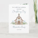 This design features an illustration of little church with blue hearts and eucalyptus leaves in watercolor style. You can adjust text according to your requirements.