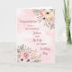 Parabéns no seu cartão do dia do casamento para o madrinho e sua esposa com lindos padrões de flores cor-de-água rosa e verso sentimental.