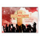 Um cartão de Natal para seu afilhado. Um cartão de Natal muito diferente. Multidões de aplausos estão acenando as mãos em frente a uma cruz ouro. A cruz é gravada com Cartões de natal e frases em vermelho. Ao fundo está um céu vermelho com multidões e estrelas a girar. Envie uma mensagem religiosa neste Natal com um cartão que exude felicidade.