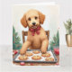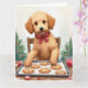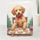 Cartão Golden Doodle Decorando Biscoitos de Natal
