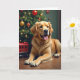 A nostalgic and tender Christmas painting of a Golden Retriever watching a toy train beneath the Christmas tree. A timeless holiday artwork that brings warmth and joy to any home.