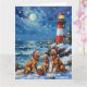 Cartão Golden Retriever Christmas Lighthouse Holiday