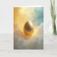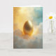This design shows a single golden egg floating in the middle of a sky filled with layered clouds, drawing your eyes straight to its glowing shape 🌷. A strong amber light behind it spreads outward like a soft halo, making the scene feel intimate, as if the sky is leaning in close to admire it. The egg’s surface looks slightly textured, like gently hammered metal, catching highlights along its curves. Around it, clouds shift from warm oranges and golds near the light to cooler whites, grays, and hints of pale cyan farther out, creating a calm-to-warm gradient that feels like a quiet embrace. There are no characters, but the way the clouds cradle the egg suggests a tender, protective closeness, like a shared secret between friends 🐇. Any greeting text would sit best along the lower edge in small, light-colored lettering so it stays readable against the darker cloud bands. The brightest glow sits just behind the egg, with soft shadowed cloud edges framing it on both sides.