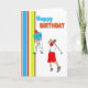 Golfing themed birthday card with vertical stripes. Beautifully designed in zingy bright colors.