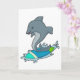 Cartão Golfinho como Surfista com Prancha de Surfe