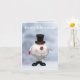 Este cartão de Natal editável apresenta um boneco de neve de lata muito redondo e engraçado, completo com cartola, cachecol e cenoura. Perfeito para combinar com uma sacola de presente correspondente.