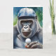 Gorila contemplando seu próximo movimento neste cartão de cumprimentos em branco.