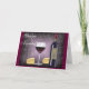 Design da arte gráfica do vidro de vinho, queijo, garrafa do vinho neste convite elegante. Introduza sua própria mensagem feita sob encomenda.
