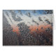 Cartão de nota com uma foto próxima de gotas de água condensada em metal com reflexos vermelhos, brancos e azuis.