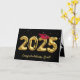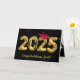 Balões de folha de ouro para graduação em 2025 em fundo preto com boné vermelho e confete de ouro. A cor preta do plano de fundo pode ser alterada.