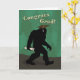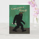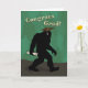 Cartão de graduação Bigfoot engraçado apresenta Sasquatch vestindo um boné e possuindo um diploma em frente a uma floresta de árvores verdes. Perfeito para qualquer pessoa que acredita nesta criatura mítica e lenda urbana.