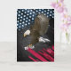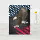 Águia caida sobre o fundo gráfico de bandeira americana e a rocha preta para parabéns de graduação.