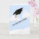Placa de saudação de na moda, com gráficos de um boné de placa de formando preto voando para cima nas nuvens. Personalize o texto, na frente e na dentro da placa, para atender às suas necessidades.