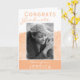 Modern Grata o Cartão de Graduação de Foto Watercolor do Formando com um Nome do Formando e uma Foto. Fundo laranja aquarela. Cartão de graduação com texto Parabéns, formando e nome do formando - personalize com seu nome e sua foto. Personalize ou apague o dentro de texto da placa.