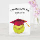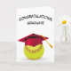 Boné de formatura vermelho num softball amarelo num fundo branco. A cor de fundo pode ser alterada. O texto é editável.