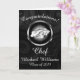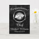 Felicite o novo chef com este cartão de formando culinário personalizado clássico para o formando da Escola de Artes Culinárias, classe de 2015. O design apresenta o logotipo do chapéu de chef em frente a um fundo girado escuro.