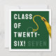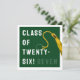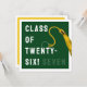 Cartão de graduação criativo para a Classe de formando '25 com boné verde formando, fita-dourada e linha engraçada. Para personalizar editar texto para adicionar seu nome.