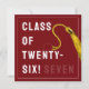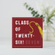 Cartão de graduação criativo para a Classe de formando '25 com boné de formando de marrom, fita-dourada e linha engraçada. Para personalizar editar texto para adicionar seu nome.