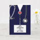 Cartão único de formatura de enfermeira com esfregões de hospital azul marinho e citação. Editar texto para adicionar nome.