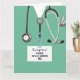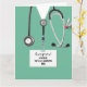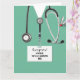 Cartão de graduação para a faculdade de medicina criativa para formando médicos, com escovas hospitalares e canivete suíço engraçado no bolso. Editar texto para adicionar seu nome.