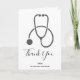 Cartões de agradecimentos de graduação com estetoscópio de cinza colocado sobre fundo preto. Personalize com um nome na frente e uma mensagem no dentro. Na moda elegante design.