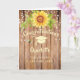 Um elegante cartão de felicitação para a graduação do girassol amarelo rústico, composto por um fundo de madeira marrom, decorado com um girassol amarelo floral bonito, com uma abelha e uma corda de luzes. Faz um cartão de parabéns único para um formando escolar, universitário e universitário. Personalizou o cartão com o nome e o ano das graduações e, em seguida, mude ou adicione à mensagem de dentro que lê atualmente "Parabéns na sua graduação e melhores desejos para a sua próxima aventura!"