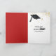 Cute stick figure girl with hair, graduation diploma, red gown, pearl necklace, sneakers, and a red cap for graduate congratulations.