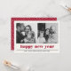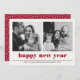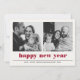Cartão com fotos de feliz ano novo para tipografia gráfica contemporânea e mínima em negrito. A parte de trás da placa apresenta uma pop de coordenação de cores com um padrão de estrela de inverno. Cartão preto e branco moderno e mínimo para natal ou cartões de natal de moda!