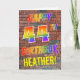 A frente desta divertida, atraente e excitante design de cartões de saudação com tema de aniversário mostra a mensagem "FELIZ 44 BIRTHDAY" com letras que têm um arco-íris multicolorido como um padrão de gradação, e um nome personalizável, amarelo, num fundo de padrão de parede de tijolos. O estilo é inspirado pelo do grafite ou arte de rua desenhada na parede. O dentro apresenta uma mensagem de saudação de aniversário que pode ser personalizada. Um cartão de boas-vindas de aniversário divertido, feliz e personalizável como este pode ser uma forma especial de comemorar o aniversário de 44 de alguém. [~Z0000357]