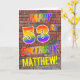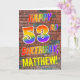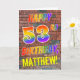A frente deste vibrante, atraente e excitante design de cartões de saudação com tema de aniversário apresenta a mensagem "HAPPY 53RD BIRTHDAY" com letras com um arco-íris multicolorido como um padrão de gradiente, e um nome personalizado amarelo, sobre um padrão de padrão de parede de tijolos. O estilo é inspirado pelo do grafite ou arte de rua desenhada em uma parede. O dentro apresenta uma mensagem de saudação de aniversário que pode ser personalizada. Um cartão de saudação de aniversário feliz, divertido e personalizado como este pode ser uma forma especial de comemorar o 53º aniversário de alguém. [~Z0000357]