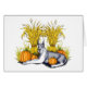 Outono e trabalho de arte de Halloween de Danes-R-Us apresentando um Grande Dane com um pano de fundo de milho e abóboras na frente.