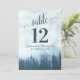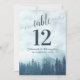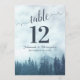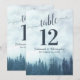 Estes belos cartões de número de mesa de casamento apresentam um design elegante, mas rústico, com um título de caligrafia rebuscada e um fundo de pinheiros azuis envoltos em névoa ou neblina. Esses cartões são maiores que o padrão, facilitando que seus convidados encontrem suas mesas. Uma maneira perfeita de tornar sua recepção de casamento bonita e ajudar seus convidados a encontrar a mesa certa ao mesmo tempo.