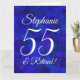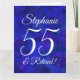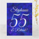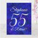 Real Blue 55 e Cartão de aposentadoria feliz aposentado de grande porte Este é um cartão especial único e elegante de aposentadoria Real Blue art, especialmente projetado para seus amigos que estão fazendo 55 anos e estão se aposentando! Personalize este cartão com seu nome e todos os nomes de seus colegas de trabalho dentro. O nome deles também será adicionado ao dentro da placa e você poderá personalizar o dentro com o(s) seu(s) nome(s) como doador de presente/cartão. Emparelhe este cartão com uma caneca de aposentadoria ou presentes da nossa loja! Seu amigo vai adorar este cartão de aposentadoria elegantemente projetado.