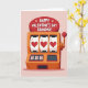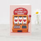 This card shows a classic slot-machine illustration in pumpkin-orange set against a blush-pink background, turning a familiar game scene into a sweet Valentine moment ❤️. At the top, an oval sign holds the message “HAPPY VALENTINE’S DAY GRANDMA!” in rounded white letters, with tiny pink hearts sprinkled around the words. The machine sits centered in a tidy, balanced layout, and its warm orange casing pops gently against the soft backdrop. Three large reels line up across the middle, each showing a plump ruby-red heart on white, like a lucky match that feels like a loving wink 🥰. Below them, a smaller dark display adds contrast, with six little white squares, each holding a small red heart. Soft shading and light gradients give the machine a slightly raised look, while reds and pinks echo the affectionate theme without needing extra decoration. On the right side, a red knob tops the lever, positioned as if it was just pulled, with the handle angled beside the orange frame.