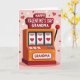This greeting card shows a retro slot machine front and center on a soft pink background sprinkled with small red and white hearts. The machine is mostly orange with deep red accents, and it has shiny buttons along the bottom plus a black lever on the side topped with a red ball. Across the top, a raised banner reads “HAPPY VALENTINE’S DAY GRANDMA” in white letters, placed right above the reels so it’s the first thing you notice. In the middle, the three reels line up to show three glowing red hearts, like a lucky win for love. A smaller panel below also says “GRANDMA” in white lettering, reminding you exactly who this is meant for. The whole scene feels sweet and a little funny in a warm way, like saying your love for her is a sure thing. It’s a meaningful card to give because it mixes familiar Valentine hearts with a fun “jackpot” idea that says she’s treasured 🥰❤️. Hope it helps you share Valentine’s Day sentiments with someone you love.