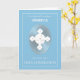 Celebrate with your grandson as he makes his first Holy Communion. He will love seeing his name on the front for a personalized congratulations card. A white cross has a round host behind it with rays coming out from it filling the center of the card. Blue surrounds the the rays.