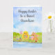 Bright spring colors and playful charm fill this watercolor Easter card, featuring a fluffy baby chick carrying a basket of colorful Easter eggs while a friendly bunny wearing a pink bowtie keeps watch nearby. Set among blooming pastel tulips, the scene captures the excitement and fresh spirit of the season. Thoughtfully created as a special Easter greeting for your grandson, this cheerful design sends warm wishes, smiles, and joyful holiday fun.