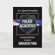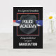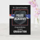 When your grandson has achieved graduation from the police academy, this card will celebrate with him and let him know how proud you are of his accomplishment. Black background sets off the badge and text. A folded flag is seen behind the law enforcement badge.