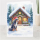 Cartão Greater Swiss Mountain Dog Snowy Cabin Santa Hat