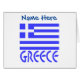 Cartões de nota personalizados com a bandeira grega e a palavra, GRÉCIA, em azul. A bandeira mostra faixas azuis e brancas com uma cruz azul e branca na área superior direita. Acima dele, adicione seu nome em letras azuis para um toque personalizado ou crie um presente. Divertido por notas sobre reuniões familiares, viagem, clubes, e compartilhar seu amor e orgulho em sua herança, ancestralidade e cultura. Excelente para celebrar o Dia Oxi.