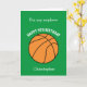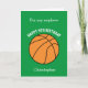 Um cartão de aniversário verde personalizado para o basquete 9 para sobrinho, filho, neto, etc. Você será capaz de personalizar facilmente a frente com o nome dele. O dentro lê uma mensagem de aniversário, que você também pode editar facilmente. Você pode personalizar a parte de trás deste cartão de aniversário de basquete com o ano. Isso faria um cartão de aniversário único para crianças que amam basquete.