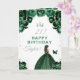 Cartão Green Floral Brunette Hair Girl Feliz Aniversário