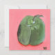 Acrylic painting art print of a green pepper with pink background.