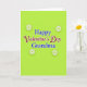 This card features a bright lime green background with the message “Happy Valentine’s Day Grandma” centered in the middle ❤️. The words “Happy” and “Grandma” are in royal blue, using a simple, easy-to-read letter style that feels steady and clear. “Valentine’s Day” sits between them in deep maroon, written in a flowing cursive style that adds a softer, romantic touch. The letters have a thin white outline that helps the text stand out and gives it a gentle glow. In each corner, there’s a small white starburst or daisy-like shape, each with a faint shadow that adds a little depth. The overall look feels cheerful and affectionate, like a sweet reminder that she’s loved and remembered. It’s a meaningful card to give because it says exactly who it’s for and keeps the focus on your bond 🥰. Hope it helps you share Valentine’s Day sentiments in a warm, caring way.