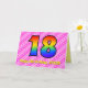 Esta design de carta de saudação de 18 anos, otimista e festiva, tem uma frente que apresenta um grande número de "18", tendo um padrão colorido inspirado pelo aspecto de um espectro arco-íris, em uma rosa claro alegre e formas de coração cor-de-rosa-escuro como fundo riscado. A frente também apresenta a mensagem "Feliz 18º aniversário", seguida de um nome de destinatário personalizável. O dentro apresenta uma mensagem de saudação de aniversário personalizável, ou talvez possa ser apagado e deixado o vazio se uma mensagem for escrita manualmente. Um cartão de aniversário como este pode ser uma maneira divertida e feliz de enviar desejos de aniversário a alguém que comemora seu décimo oitavo aniversário. [~Z0000418]