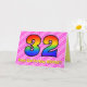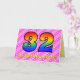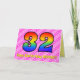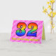 Esta design de 32 anos de saudação de 32 anos alegre e otimista tem uma frente com um grande número de "32", tendo um padrão colorido inspirado pelo aparecimento de um espectro do arco-íris, em uma rosa claro e formas de coração cor rosa-escura com um padrão riscado. A frente também apresenta a mensagem "Feliz 32º Aniversário", seguida de um nome de destinatário editável. O dentro apresenta uma mensagem de saudação de aniversário personalizada, ou talvez possa ser apagado e deixado o vazio se uma mensagem for escrita manualmente. Um cartão de aniversário personalizável como este pode ser uma maneira divertida e feliz de reconhecer o trinta e dois anos de alguém. [~Z0000418]