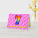 Este design de 7 de saudação divertida e alegre de aniversário tem uma frente com um grande número "7" tendo um padrão colorido inspirado pela aparência de um espectro arco-íris, num cor-de-rosa escuro divertido e rosas claro formas cardíacas com padrão de listras. A frente também apresenta a mensagem "Feliz 7 Aniversário", e um nome de destinatário personalizado. O dentro apresenta uma mensagem de saudação de aniversário personalizada, ou talvez possa ser apagado e deixado vazio se uma mensagem for escrita manualmente. Um cartão de aniversário personalizado como este pode ser uma forma divertida e feliz de reconhecer o sétimo aniversário de alguém. [~Z0000418]