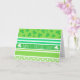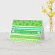 Cartão de saudação de padrão de faixa verde de Dia de São Patrício e embrulho de presente, caixas de festas, fita, papel de tecido e mais acessórios de embrulho de presente para um feriado festivo! Este padrão riscado tem vários tons de bolinhas verdes, brancas, molhos irlandeses e uma mensagem de Dia de São Patrício Feliz. É um design gráfico bonito que é perfeito para crianças e adultos!