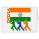 Três mostraram em silhueta jogadores indianos do grilo sob a bandeira indiana com o nome de país India ao longo do lado.