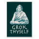 Grok: (grahk): compartilhe da mesma realidade ou linha de pensamento com uma outra entidade física ou conceptual. "Grok Thyself" com de pernas cruzadas um desenho do guru, em t-shirt, hoodies, cartões, presentes.